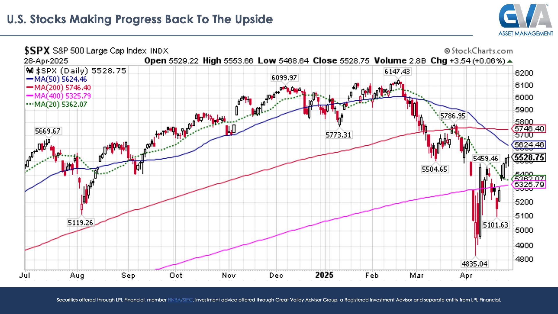 Investors have been in search of a new bull market with stocks careening to the downside for more than two months.  The footprints of the new bull market were discovered more than a week ago when stocks showed no inclination to retest April 7 lows even with the executive branch threatening the independence of the U.S. Federal Reserve.  The new bull was perceived in the days that followed as the S&P 500 broke decisively above its short-term 20-day moving average for the first time since its mid-February highs.  And as we enter the new trading week, investors are well served to catch the bull as it charges to its next high plateau potentially beyond new all-time highs.