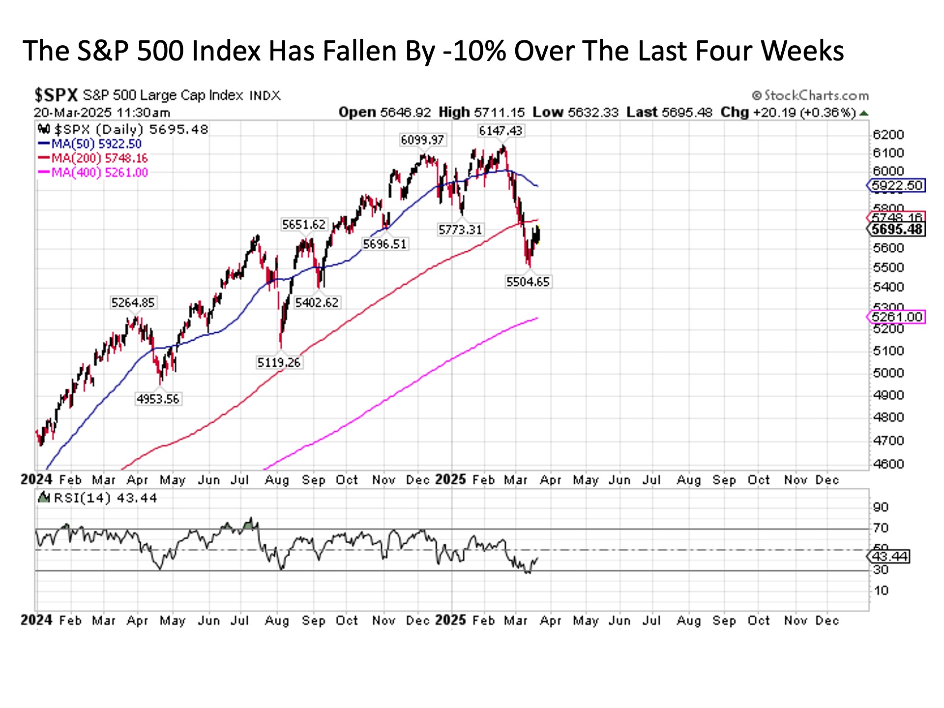 Seen.  Yes, the S&P 500 has fallen by -10% in just over four weeks.  But it is important to put the current decline into context.  Prior to the recent drop, the S&P 500 had rallied by more than +50% since the Halloween before last.  Along the way, the U.S. stock market did virtually nothing other than go straight up.  If anything, it’s not the fact that the S&P 500 has fallen by just over -10% in recent weeks that is all that unusual.  Instead, it’s the fact that it took nearly a year and a half before we saw a -10% drop in the S&P 500, particularly following such a phenomenal run.  After all, the stock market historically does not go up or down in a straight line.  Instead, it typically moves in a “three steps forward, one step back” oscillating pattern to the upside (and the opposite to the downside unless it’s a full blown crisis).  What have we seen since late 2023?  A stock market that’s effectively taken 15 steps forward and virtually no steps back until about a month ago.  In short, this pullback is loooooong overdue.