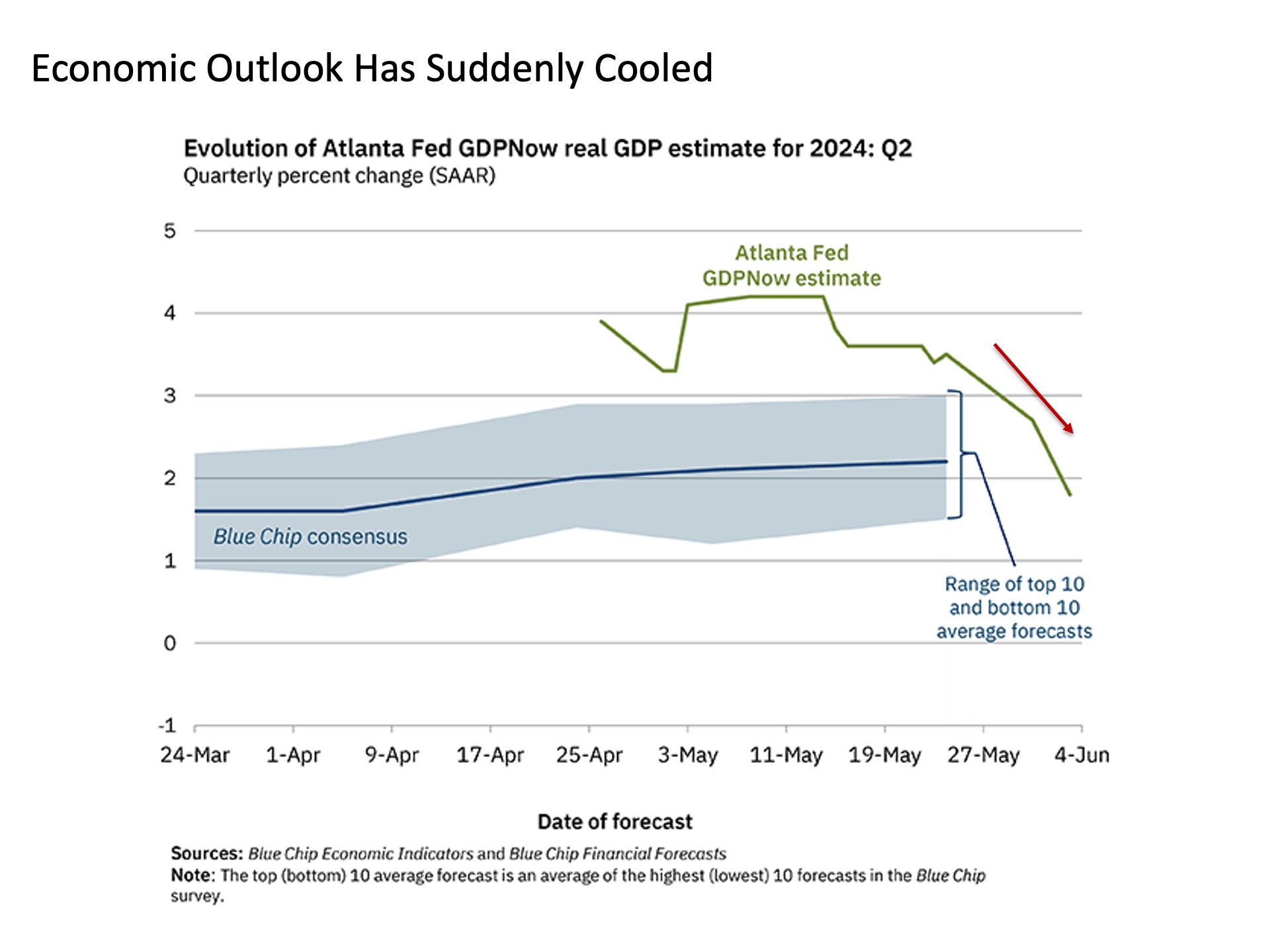 Put simply, projections for U.S. economic growth are suddenly slowing.  And various leading indicators suggest that this cooling may continue through the remainder of the year.