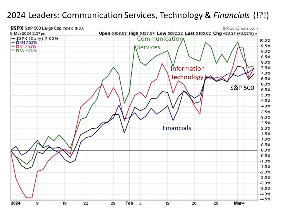 Bottom line. While U.S. stock market performance continues to shine in 2024, it remains worthwhile as always to look beneath the surface in examining details like sector performance as well as going deeper into the specific sector constituents that may be driving sector performance at any given point in time to better understand the dynamics driving the market. And today, information technology and friends continue to lead.