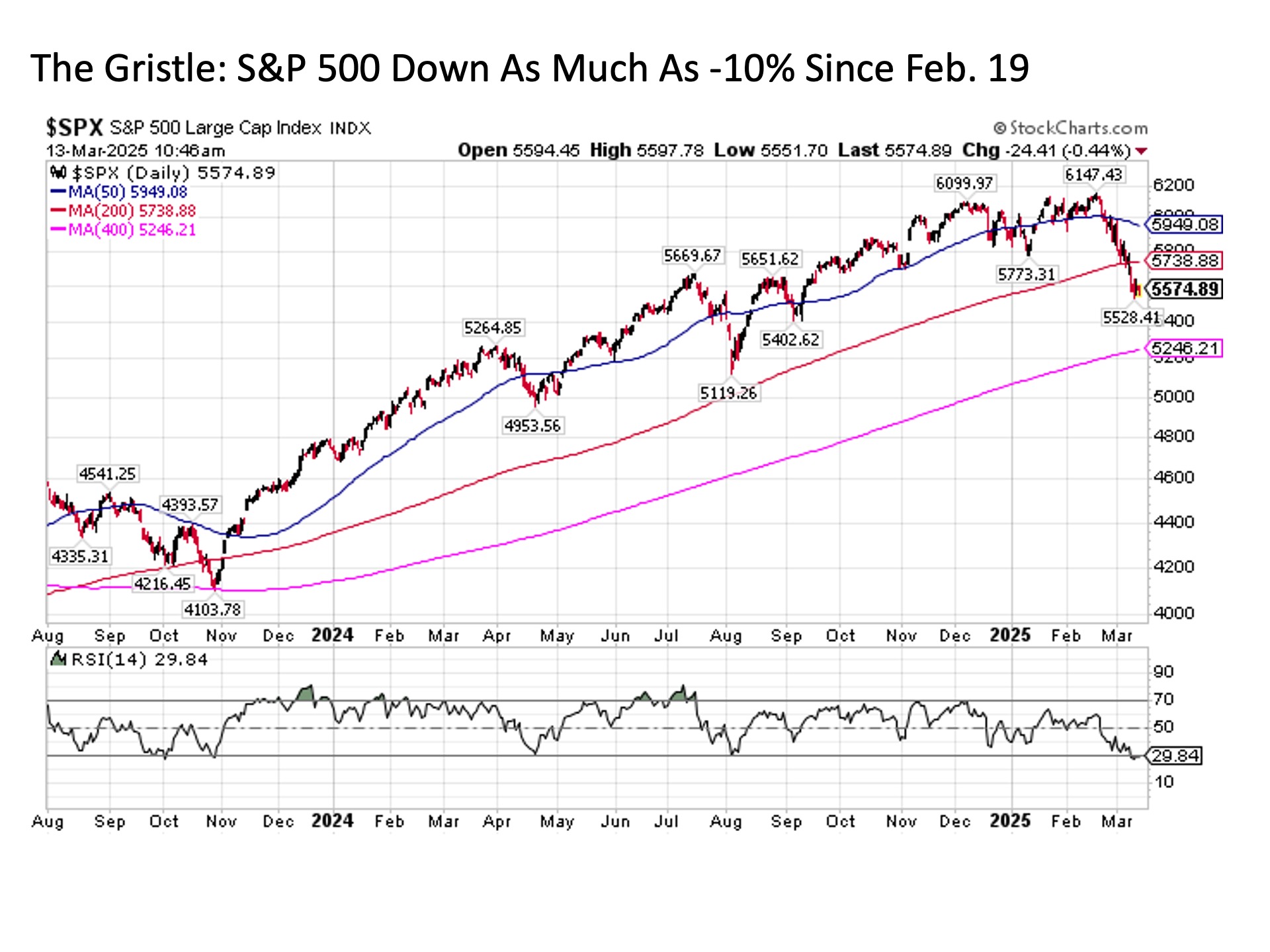 The U.S stock market has certainly been bad lately.  Since setting a new all-time high on February 19, the S&P 500 has fallen by more than -10% peak to trough in the fifteen trading days since.  In the process, this headline index is now lower by more than -5% for the year-to-date and has fallen below its long-term 200-day moving average trendline for the first time since October 2023.  Amid the economic gristle of potentially slowing economic growth and the looming threat of tariffs, many investors are understandably unsettled.  But the good news is that markets are providing many reasons to whistle, including important reminders about the virtues of broad portfolio diversification and maintaining a long-term view.