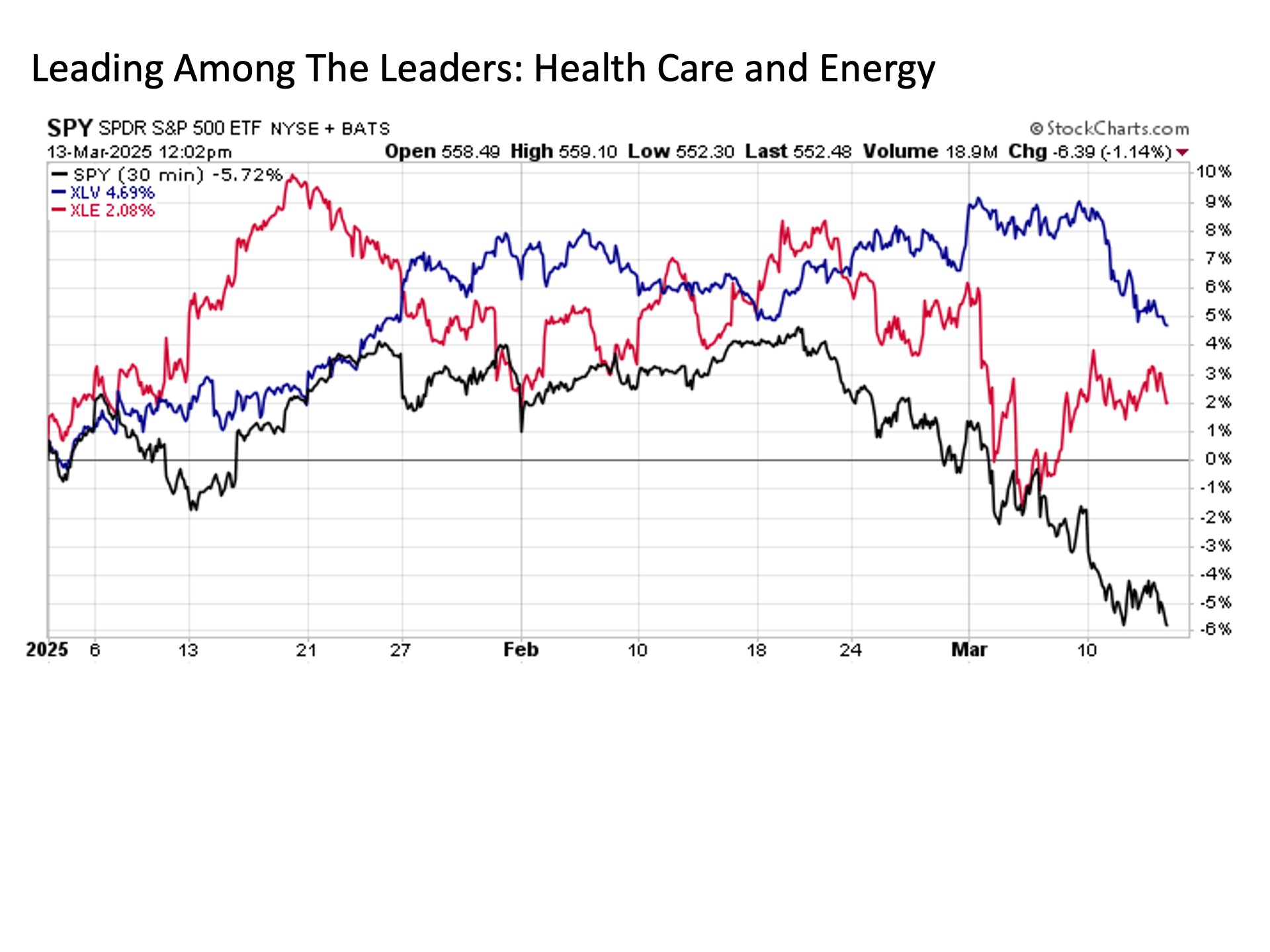 Shining sectors.  Let’s now dig further by breaking the U.S. stock market into its component parts.  Yes, the Information Technology and Consumer Discretionary sectors have been getting drubbed so far in 2025.  But once you get past these two lagging sectors, the rest of the market is not only holding up much better but is performing quite well.  Consider that six of the eleven major sectors within the S&P 500 – health care, energy, consumer staples, utilities, real estate, and materials – are trading higher for the year to date.  And for three of the five sectors trading lower that are not tech and consumer discretionary in industrials, financials, and communication services, these are all only down by just over -1%.  In short, what we’re seeing play out in the U.S. stock market right now is not a crash or even a broad-based decline.  Instead, it is effectively a correction in tech and friends, with the money spreading its way across the rest of the market.  This is a positive development for long-term investors in the view of this Chief Market Strategist, not a negative.
