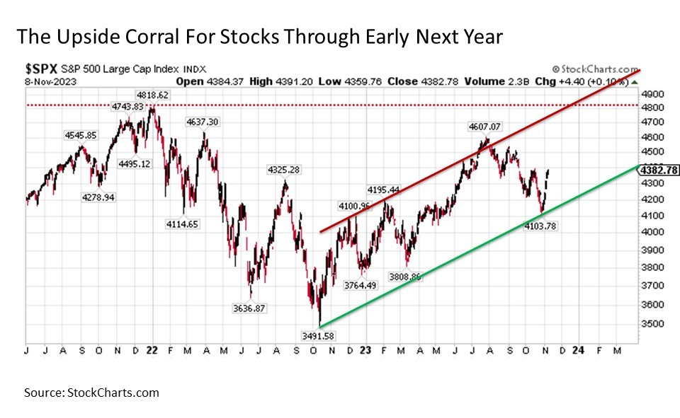 All of this bodes well for further declines in U.S. Treasury yields in the days and weeks ahead. In fact, one should not be surprised if we see the 10-Year stampeding its way back toward 4% or below before the end of the year. Not only would this provide a welcome boost to long suffering bond investors, but it would give a meaningful added tailwind to support additional moves higher in stocks too.