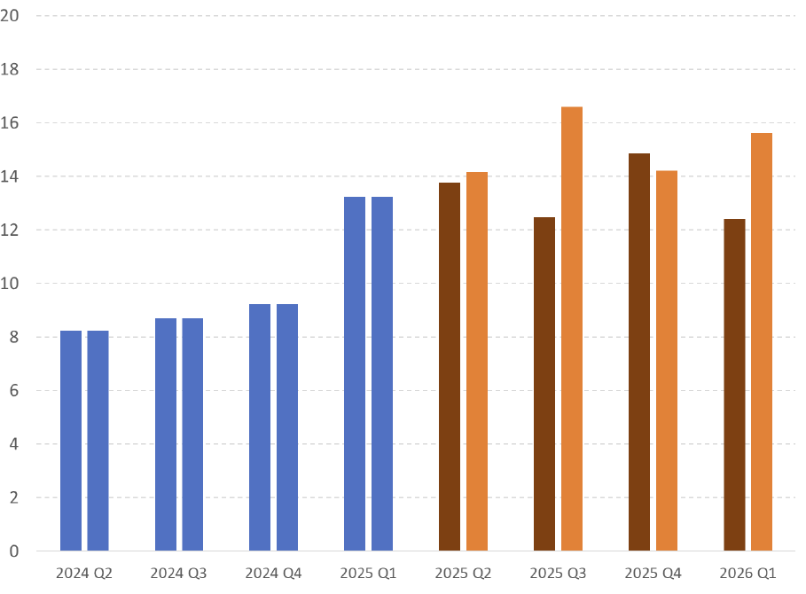 Check it. At the start of 2025 Q2 earnings season, the actual profit growth forecast for the next four quarters is shown in the chart below by the dark red bars. Rock solid in the 12-15% (I’m still puzzling on where everyone was getting the 5%ish growth estimates heading into earnings season. C’mon!). Where are we today coming out of earnings season with roughly 80% of companies having reported? While companies typically revise their profit outlooks lower the closer the future draws closer to reality, they instead revised their already lofty outlooks higher as shown by the orange bars below to the 14-17% range. Showtime at the Apollo indeed!