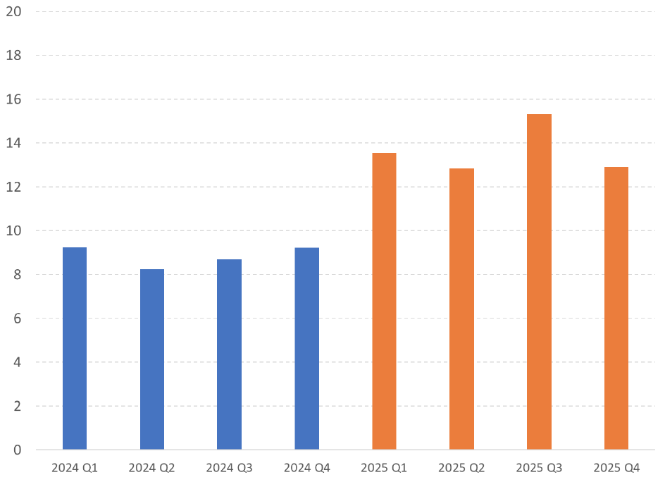 12-Month Earnings Per Share – As Reported Earnings – Annual Growth Rate (%) as of 5/30/2025