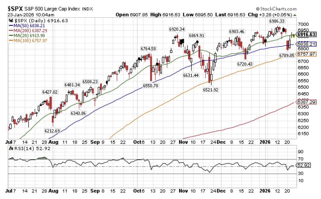 Frankly, my dear, I don’t give a damn. Let’s consider the headline S&P 500 Index, the market cap weighted benchmark that is now roughly 50% allocated to the technology sector if you throw in a few of the leading former tech and tech adjacent names such as Alphabet (Google), Meta Platforms (Facebook), Amazon, Tesla, Visa, and MasterCard. Does the psychologically important but otherwise meaningless 7000 mark remain frustratingly elusive? Sure. But the headline index is still trading marginally higher for the year to date, which can hardly be described as any form of market turmoil. What about Tuesday when the S&P 500 along with its NASDAQ 100 counterpart plunged by more than -2% in the wake of the Greenland brouhaha over the weekend? Gone with the wind, as stocks have rallied by more than +2% since, effectively wiping away the momentary blip. We didn’t even retest the sharply upward sloping 100-day moving average, for goodness sake, much less see anything that could even be described as roiling capital markets.